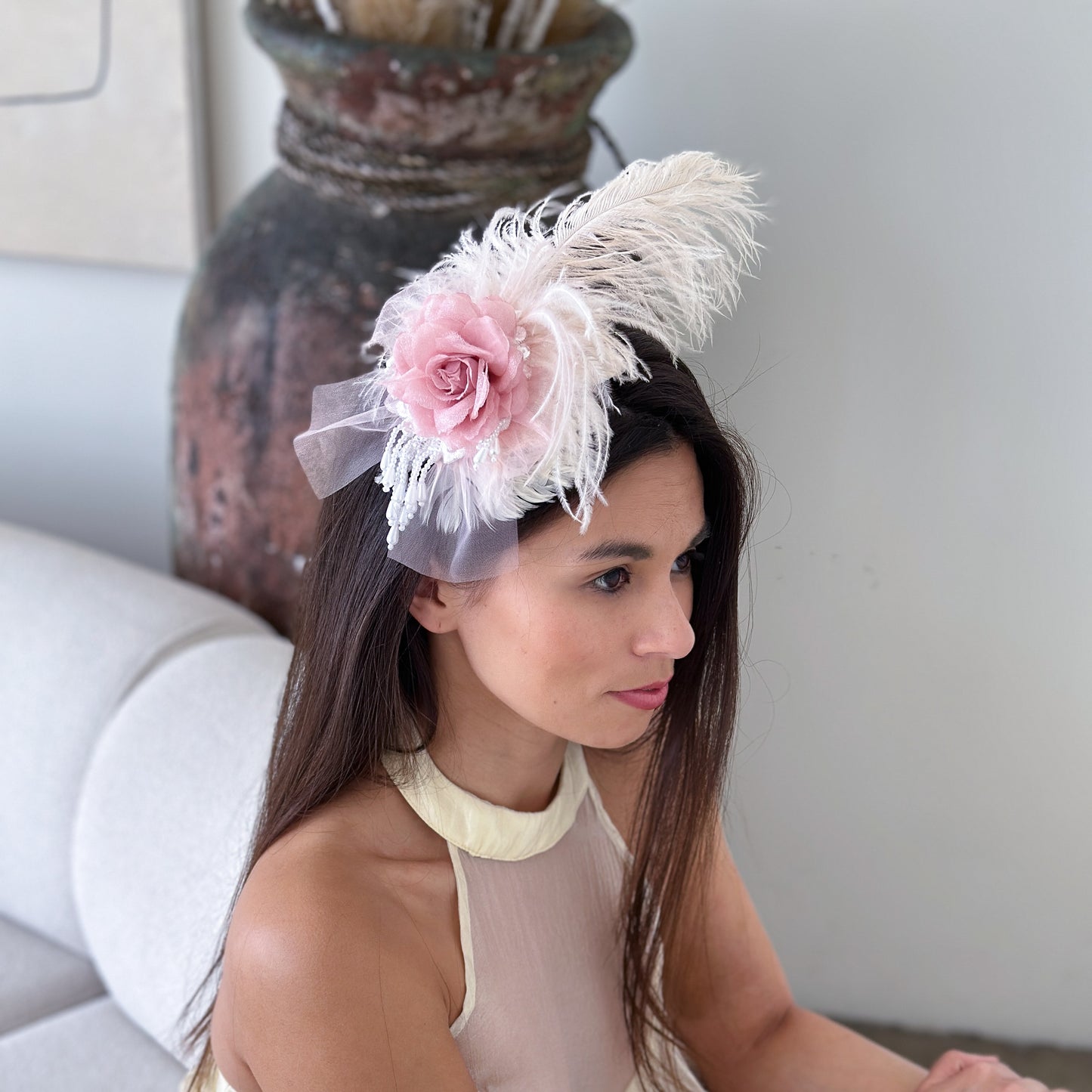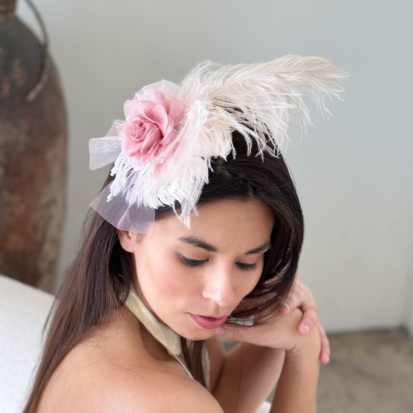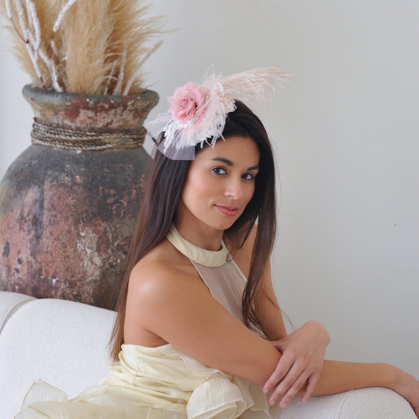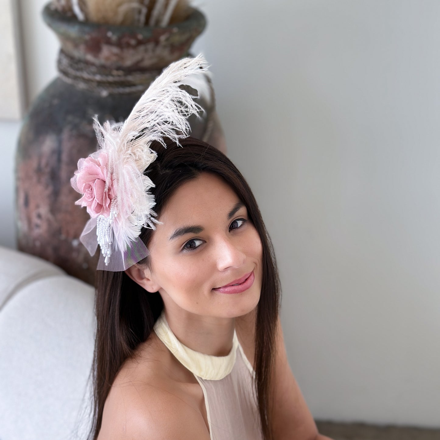Victorian Style Ostrich Feather Clip Fascinator - Pink Champagne