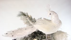 Elegant white feather ornament ball. Available in 2 sizes, these Christmas tree ornaments are made with Feathers that have been Tipped with Golden Glitter. With it's sparkling details, these white ornaments are a must have this holiday season. With matching feather trees, wreaths and garlands...you can shop the entire Sparkling Holiday Collection of white Christmas decorations. Pair them together or showcase them separately, complementing your table setting & home interiors. Great for giftwrapping and gift giving too!